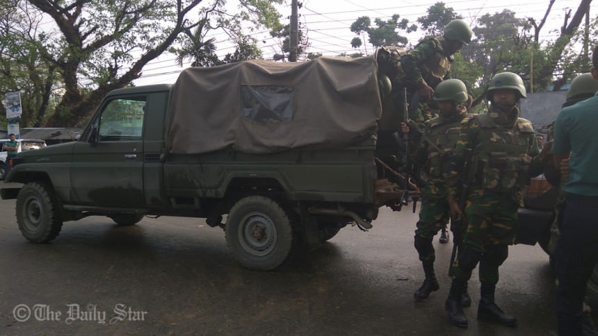 আজ সকাল ৯টা ৩৫ মিনিটে ঘটনাস্থল থেকে এক সেনা কর্মকর্তা সাংবাদিকদের জানান, বাংলাদেশ সেনাবাহিনীর প্যারা কমান্ডো ব্যাটালিয়নের একটি ইউনিট অভিযান পরিচালনা করছে।