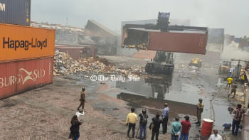 ফায়ার সার্ভিসের সহকারী পরিচালক মো. আখতারুজ্জামান দ্য ডেইলি স্টারকে বলেন, 'অগ্নিনির্বাপক কর্মীরা সন্ধ্যা ৭টার দিকে ক্ষতিগ্রস্ত কনটেইনারগুলো সরিয়ে নেওয়ার সময় ধ্বংসাবশেষের ভেতরে মানুষের মাথার খুলি ও হাড় খুঁজে পেয়েছে।'