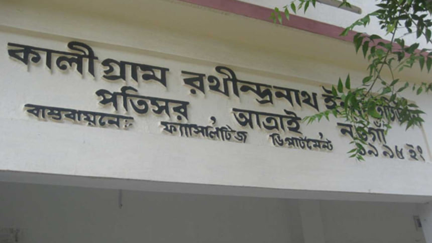 কাছারিবাড়িটি চতুর্ভুজাকৃতি। মাঝে স্বল্প পরিসরের খোলা লন আছে। এর তিনদিকে ঘিরে ঘরগুলো অবস্থিত। মাঝের লনে বই হাতে দাঁড়ানো রবীন্দ্রনাথের একটি ভাস্কর্য আছে। মনে হলো রবীন্দ্রনাথ মাথা উঁচু করে যেন দাঁড়িয়ে আছেন এবং আমাদের অভয়বাণী দিচ্ছেন। জাদুঘর দেখা শেষ করে সামনের পুকুরের শান বাঁধানো ঘাটে এসে বসলাম। বসার জায়গাটা চমৎকার। এখানকার বই-হাতে আরাম কেদারায় বসা অপর রবীন্দ্র ভাস্কর্যটি দেখে মন জুড়িয়ে গেল। ভাস্কর শিল্পী কনক কুমার পাঠকের শিল্পবোধ মন ছুঁয়ে যায়। বিশ্রাম নিচ্ছি এমন সময় পরিচয় হলো রবীন্দ্র বিশেষজ্ঞ স্থানীয় অধিবাসী মো. খলিলুর রহমানের সঙ্গে। অবাক হলাম রবীন্দ্রনাথের ব্যাপারে তার অনুসন্ধিৎসুতা জেনে। তিনি আমাদের পতিসরে রবীন্দ্রনাথের সৃষ্টি ও এখানকার মানুষদের প্রতি তার মনোভাবের কথা বললেন। এরপর তিনি নিয়ে গেলেন আহমদ রফিক গ্রন্থাগারটি দেখাতে। স্থানীয় কয়েকজন রবীন্দ্রপ্রেমিক মিলে বছর পাঁচেক ধরে গড়ে তুলেছেন লাইব্রেরিটি। অজপাড়াগাঁয়ে এ ধরনের লাইব্রেরির কথা ভাবাই যায় না। প্রচুর সংগ্রহ, অধিকাংশই রবীন্দ্র বিষয়ক। বইয়ের প্রাচুর্য থাকলেও পাঠকের স্বল্পতার কথা বললেন। এ অবস্থা দেশের কোথায় নেই! যাক সেসব। এরপর আমরা গেলাম শতবর্ষ পুরনো রথীন্দ্রনাথ ইনস্টিটিউশন দেখতে। এর স্থাপত্যশৈলী যে কারো নজর কাড়বে। প্রথম দর্শনে আমরাও মুগ্ধ হলাম রবীন্দ্রনাথের নিজ হাতে প্রতিষ্ঠিত বিদ্যালয়টি দেখে। পুরনো ঘরটির পুরোটাই টালির চমৎকার ব্যবহার করা হয়েছে, হয়ে উঠেছে দৃষ্টিনন্দন। জানা গেল, এটি প্রথম থেকেই একই রকম আছে। বিদ্যালয় দেখা শেষ করে এরপর আমরা গেলাম নাগর নদের তীরে গড়ে ওঠা পতিসর বাজারে। বাজারটি বেশ ছোট, অল্প কয়েকটি মনিহারীর দোকান আছে। দুপুর গড়িয়ে যেতে বসেছে। খাবার হোটেল খুঁজতেই পেয়ে গেলাম মাস দুয়েক পার হতে চলা একটি নামহীন হোটেলের। নাগর নদের টাটকা মিশেল মাছ, মসুরি ডাল দিয়ে যেই খাবার সারছি অমনি মাথায় একটা নতুন বুদ্ধি খেলে গেল। এই নাগর নদ ধরেই তো রবীন্দ্রনাথ তার অতি প্রিয় পদ্মা বোটে করে ভ্রমণ করেছেন। আমরাও তো তা করতে পারি। নাগর-আত্রাই-করতোয়া-গড়াই-পদ্মার স্মৃতিকথা ‘ছিন্নপত্রে’র পাতায় পাতায় যে বর্ণনা আছে তা রবীন্দ্রপ্রেমিকদের মনে সবসময়ই দোলা দেয়। আমাদের ছোট নদী চলে বাঁকে বাঁকে... খ্যাত নাগরের কথা তিনি যে কতবার তার রচনায় উল্লেখ করেছেন তার ইয়ত্তা নেই। যেই ভাবনা অমনি তার বাস্তবায়ন। খলিলুর ভাই নাগরে নৌ-ভ্রমণের যাবতীয় ব্যবস্থা করে দিলেন। বেশ বড়সর একটা নৌকা ভাড়া করে আমরা বেলা ৩টার দিকে রওনা হলাম নাটোরের সিংড়ার উদ্দেশে। ইচ্ছে ছিল রবীন্দ্রনাথ যে পথে শাহজাদপুর অথবা শিলাইদহের কুঠিবাড়ীতে নৌকায় যেতেন, সেই পথ ধরে এগোনো। কি