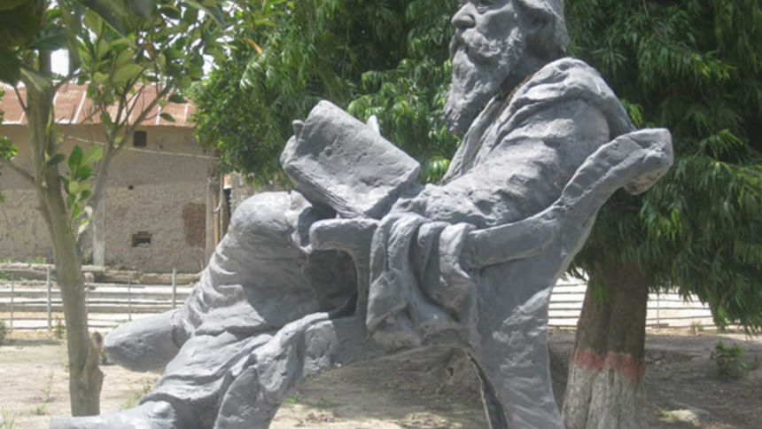 রেললাইন পার হয়ে সরু পিচঢালা রাস্তা ধরে এঁকে-বেঁকে এগিয়ে যেতে লাগলাম। দু’পাশে পরিত্যক্ত ফসলের মাঠ আর মাঠ। শস্যহীন, শ্রীহীন এ মাঠের ফসলের প্রাচুর্যের চিত্রকল্প অনুভব করে রবীন্দ্রসংগীতে ডুব দেয়ার চেষ্টা করলাম। কিন্তু বৃথা আয়োজন, রাস্তার উঁচু-নিচু খানাখন্দে হেডফোনে গান শোনার সব আয়োজন ব্যর্থ হলো। ফসলের দেখা না পেলেও দেখা পেলাম তরুণী জলস্রোতের। নদীর ঘোলা জলের বানে ভেসে গেছে ধানকাটা মাঠগুলো। জলধারার সরব উপস্থিতি রাস্তার দু’ধারের নালাতেও। এখানকার লোকালয়গুলো বেশ দূরে-দূরে এবং গাছ-গাছালিও বেশ কম। রাস্তায় লোকজনের উপস্থিতিও কম দেখা গেল। সমস্ত পথে মাঝারি গোছের মাত্র দু’তিনটে মোড়ের দেখা মিলল। আমরা যে সড়ক ধরে এগোচ্ছি তা নওগাঁ জেলা পরিষদের রাস্তা। আগে এখানকার লোকদের জেলা-উপজেলার সঙ্গে চলাচলের এই রাস্তাটির অবস্থা সঙ্গীন ছিল। রবীন্দ্রনাথের কল্যাণে মোটামুটি চলাচল উপযোগী মূল সড়ক থেকে এরপর আমরা ডানের সরু সর্পিল রাস্তা ধরে এগোতে থাকি; আর সঙ্গে সঙ্গে সম্পূর্ণ বদলে যেতে থাকে প্রাকৃতিক দৃশ্যপট। রাস্তার দু’ধারে তালগাছের সারি, রোপণ করেছে বরেন্দ্র উন্নয়ন কর্তৃপক্ষ। এসব দেখতে দেখতে মিনিট বিশেকের মধ্যে পৌঁছে যাই রবীন্দ্র-স্মৃতিধন্য পতিসরে।