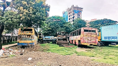 এক দশকেরও বেশি সময় ধরে দারুস সালাম থানা জব্দকৃত গাড়ি দিয়ে দখল করে রেখেছে এই মাঠের একাংশ।