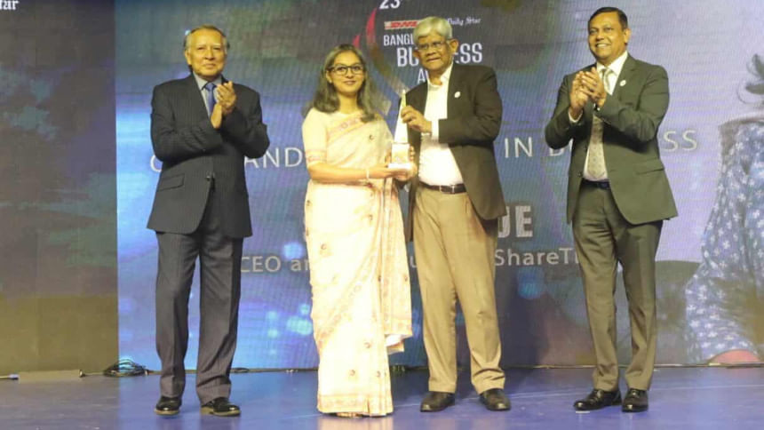 এ বছরের বাংলাদেশ বিজনেস অ্যাওয়ার্ডে 'বর্ষসেরা নারী উদ্যোক্তা'র পুরস্কার পেয়েছেন শেয়ারট্রিপ-এর সহ-প্রতিষ্ঠাতা ও প্রধান নির্বাহী কর্মকর্তা সাদিয়া হক।