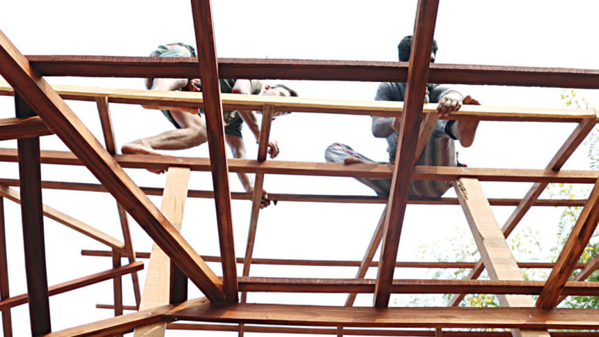 নদীভাঙনের চ্যালেঞ্জ থেকে অনন্য উদ্যোগ: শৈল্পিক ‘কাঠের ঘর’