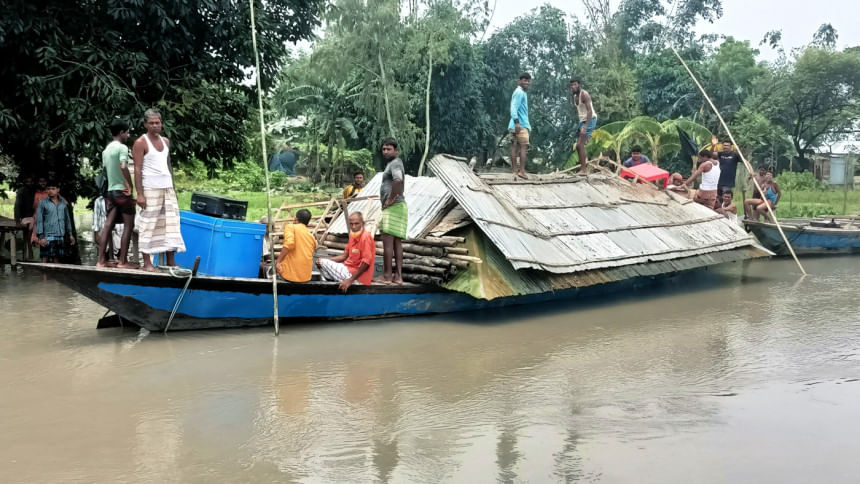 কুড়িগ্রাম সদর উপজেলার বানিয়াপাড়া গ্রামের মেহের জামাল কান্নাজড়িত কণ্ঠে বলেন, 'গত কয়েক বছরে সাত বিঘা জমি নদীতে বিলীন হয়ে গেছে। মাত্র ১০ শতক জমির ওপর কোনোরকমে বাস করছিলাম, বুধবার সকালে সেটাও নদীতে চলে গেল। তিনটি ঘর কোনোভাবে সরাতে পেরেছি। এখন আমার পরিবার ভূমিহীন, যাওয়ার কোনো জায়গা নেই।'