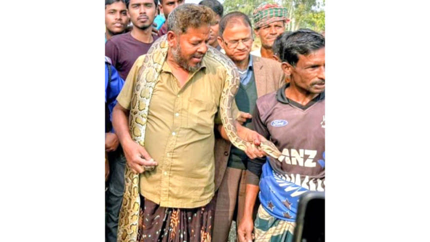 কুড়িগ্রামে ৯ ফুট লম্বা অজগর উদ্ধার