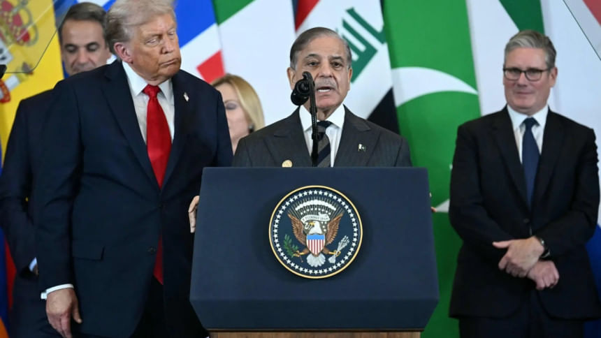 পাকিস্তানের প্রভাবশালী সংবাদমাধ্যম ডন এক নিবন্ধে বলছে, গাজা সংকটের ভবিষ্যৎ নিয়ে আলোচনা করতে বিশ্বনেতারা যখন একত্রিত হলেন, তখন পাকিস্তানি প্রধানমন্ত্রীর বক্তব্য রাষ্ট্রনায়কসুলভ বিবৃতির পরিবর্তে পরিণত হলো মার্কিন প্রেসিডেন্ট ডোনাল্ড ট্রাম্পের প্রতি একগুচ্ছ প্রশংসাবাক্যে।