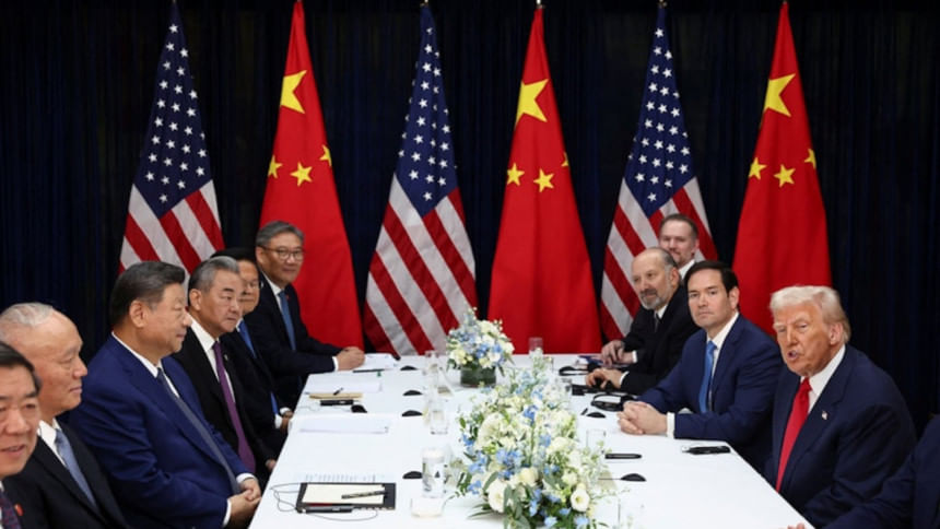 বাণিজ্যবিরোধ নিরসনের লক্ষ্যে দক্ষিণ কোরিয়ার বুসানে বৈঠকে বসেছেন যুক্তরাষ্ট্রের প্রেসিডেন্ট ডোনাল্ড ট্রাম্প ও চীনের প্রেসিডেন্ট শি জিনপিং। ট্রাম্পের শুরু করা শুল্কযুদ্ধের মধ্যে এই বৈঠকের দিকে তাকিয়ে আছে গোটা বিশ্ব।