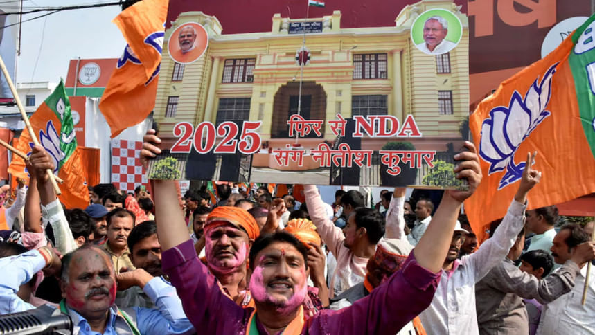 ভারতে বিহারের বিধানসভা নির্বাচনে বড় জয় পেয়েছে ক্ষমতাসীন এনডিএ জোট। এই জোটে রয়েছে বিহারের মুখ্যমন্ত্রী নীতীশ কুমারের নেতৃত্বাধীন জনতা দল ইউনাইটেড– জেডিইউ ও বিজেপিসহ আরও কয়েকটি দল।