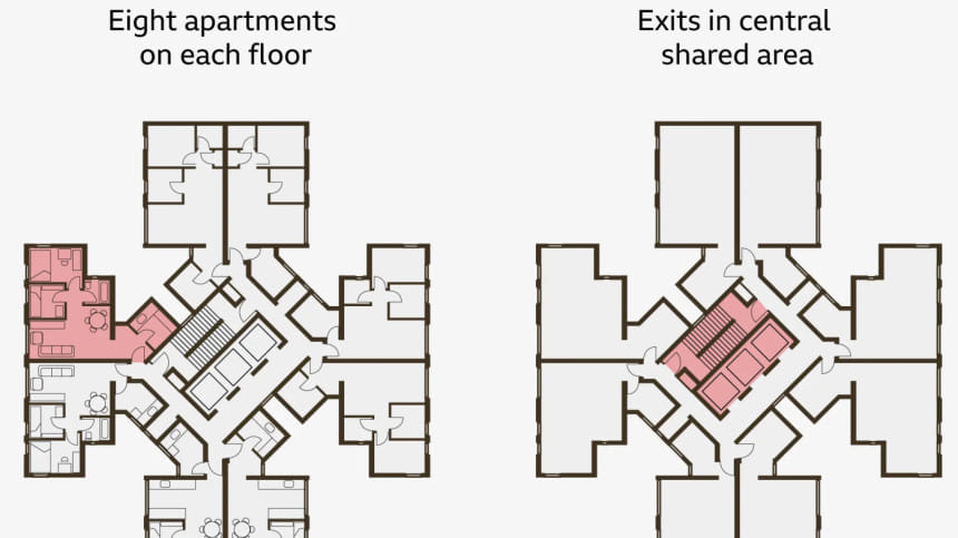 এরপর আগুন পাশের আরও ছয়টি টাওয়ারে ছড়িয়ে পড়ে।