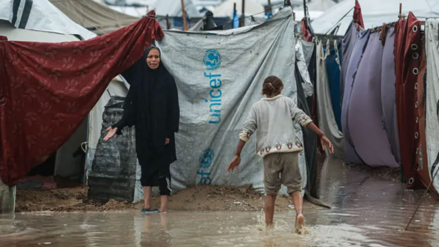 গাজায় আশ্রয়হীন হয়ে পড়া লক্ষাধিক ফিলিস্তিনির দুর্ভোগ আরও বাড়িয়ে দিয়েছে শীতকালীন ঝড়-বৃষ্টি। ত্রাণ সংস্থাগুলো সতর্ক করে বলছে, ইসরায়েলের বিধিনিষেধের কারণে অবরুদ্ধ এই ভূখণ্ডে জীবনরক্ষাকারী আশ্রয় সহায়তা পৌঁছানো সম্ভব হচ্ছে না।