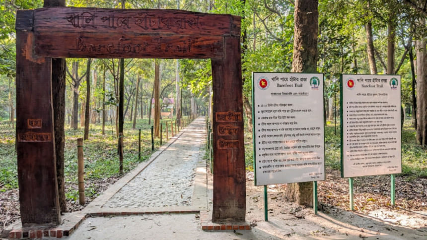ঢাকার বুকেই এই সুযোগ এনে দিয়েছে মিরপুরের বোটানিক্যাল গার্ডেন কর্তৃপক্ষ। এর নাম 'বেয়ারফুট ট্রেইল' বা 'খালি পায়ে হাঁটার রাস্তা'। ফুল, পাখি আর সবুজের সমারোহে এখনে যুক্ত হয়েছে প্রকৃতির স্পর্শ পাওয়ার সুযোগ।