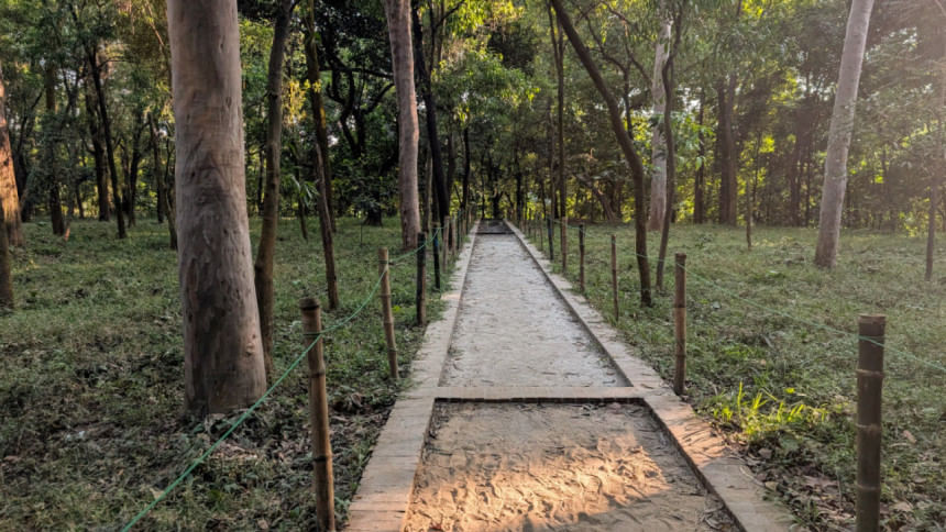 কেমন সেই হাঁটার পথ? উদ্যানের 'যাত্রাবাড়ী' নামক অংশে তৈরি করা হয়েছে ৫০ মিটার দীর্ঘ এই বিশেষ পথ। পুরো পথটি বাঁশের বেড়া দিয়ে ঘেরা। প্রবেশপথেই চোখে পড়ে দুটি সাইনবোর্ড, যেখানে খালি পায়ে হাঁটার উপকারিতা ও সতর্কতার কথা লেখা রয়েছে।