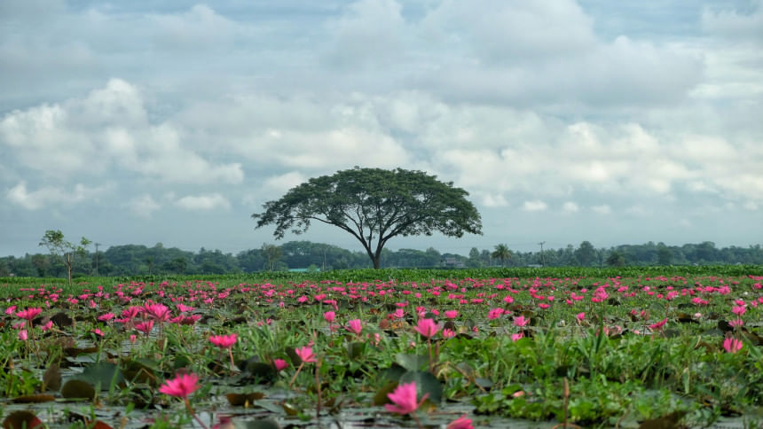 ভোরের আলোয় যখন বিলের পানিতে ফুটে থাকা শতশত শাপলা দাঁড়িয়ে থাকে, মনে হয় যেন প্রকৃতির নিজ হাতে আঁকা এক বিশাল ক্যানভাস।