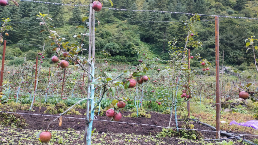 সোয়া এক ঘণ্টা হেঁটে গোয়া নামক গ্রাম। অল্প কয়েকটা ছিটানো লজ গ্রামের দুই মাথায়। গ্রামের রাস্তার দুই ধারে আপেল বাগান। আপেলের মতো লালচে গালের এক তরুণী বসে আছে বাগানের পাশেই। কবিতায় সেই কবে পড়েছি, 'সমস্ত বাতিল মাটি হোক গোলাপের জননী'। এই গ্রামের লোকজন অবশ্য সমস্ত কেজো আর বাতিল মাটিকে আপেলের জননী করে রেখেছে। গোয়া নামের এই গ্রামের অবস্থান সমুদ্রপৃষ্ঠ থেকে ২ হাজার ৪৭০ মিটার উঁচুতে।