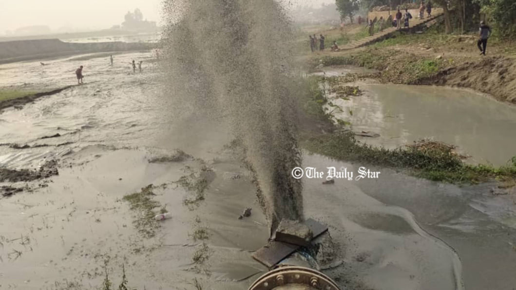 নরসিংদীর সদর উপজেলার আলোকবালী ইউনিয়নের বীরগাঁও গ্রামের পূর্বপাশে মেঘনা নদী থেকে গত এক সপ্তাহ ধরে উত্তোলন করা হচ্ছে বালু। অভিযোগ রয়েছে, স্থানীয় সরকার দলীয় প্রভাবশালীদের ছত্রছায়ায় যথাযথ অনুমোদন ছাড়াই মেঘনা নদী থেকে এই বালু উত্তোলন করা হচ্ছে।