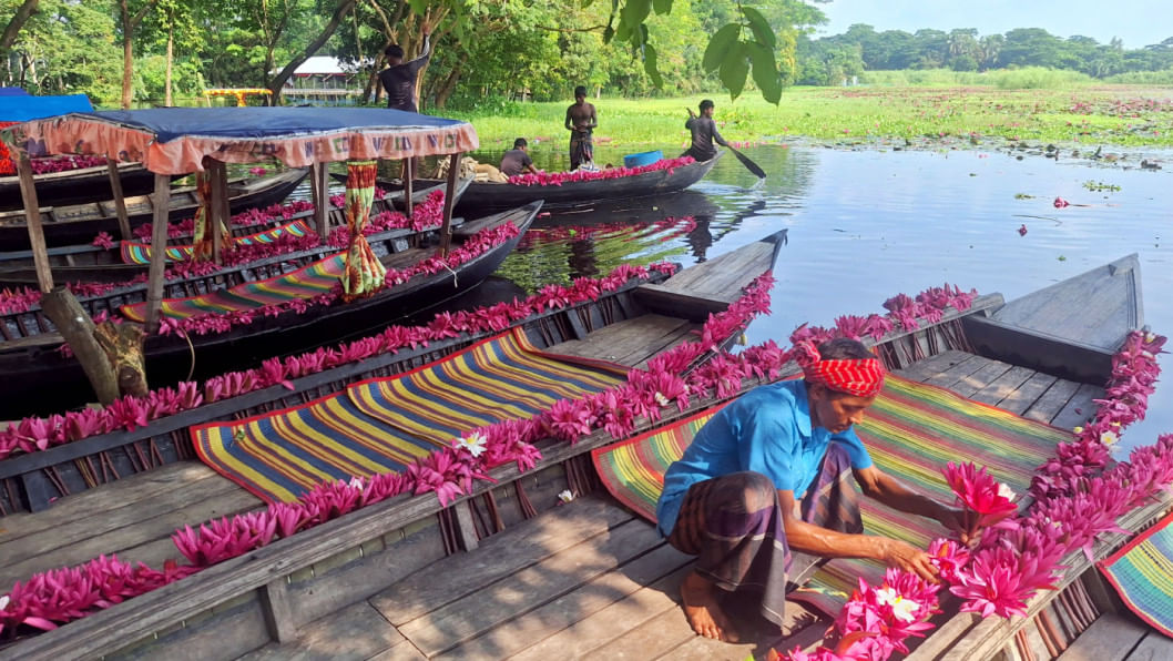 প্রকৃতির এই অপরূপ দৃশ্য দেখতে সকাল থেকে ভিড় জমান ভ্রমণ পিপাসুরা। ঘণ্টা চুক্তিতে ছোট নৌকা ভাড়া করে দূর-দূরান্ত থেকে আসা পর্যটকরা প্রকৃতির সৌন্দর্য উপভোগ করেন। ছবি তুলেছেন দ্য ডেইলি স্টারের আলোকচিত্রী টিটু দাস।
