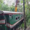 সরানো হলো লাইনচ্যুত ২ বগি, ইঞ্জিন উদ্ধারের কাজ চলছে