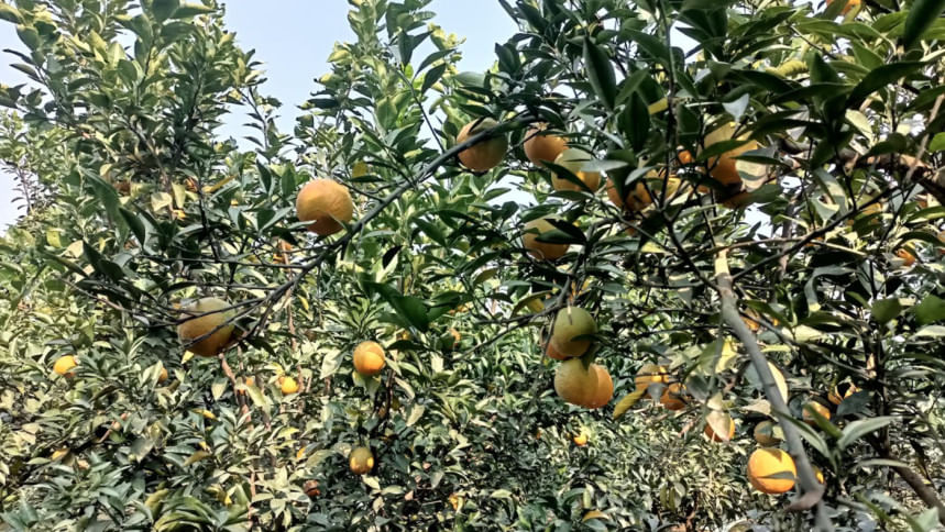 রংপুরের কাউনিয়া উপজেলার নগেন চন্দ্র সেন ২০১৯ সাল থেকে ১৫০টি গাছ নিয়ে কমলার বাণিজ্যিক চাষ শুরু করেন।