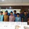 এর আগে রোববার সকালে পুলিশ উপজেলার কাজীপুর সড়কের ফুলকোঁচা গ্রামের নির্মাণাধীন একটি মসজিদের সিঁড়ি থেকে সুলুন-১২ গেজ মডেলের দুটি শটগান ও ১৬ রাউন্ড গুলি উদ্ধার করে।