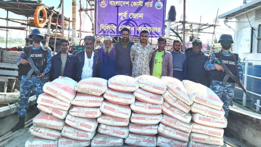 আজ শনিবার সকালে কোস্টগার্ডের মিডিয়া কর্মকর্তা লেফটেন্যান্ট কমান্ডার সিয়াম-উল-হক জানান, শুক্রবার দিবাগত রাত ১২টার দিকে বাঁকখালী নদীর মোহনা সংলগ্ন এলাকায় কোস্টগার্ড বিশেষ অভিযান চালায়। এ সময় একটি সন্দেহভাজন ফিশিং বোট তল্লাশি করে ৩৭৫ বস্তা সিমেন্ট জব্দ করা হয়, যার আনুমানিক মূল্য ১ লাখ ৮৭ হাজার ৫০০ টাকা। এগুলো মিয়ানমারে পাচার করা হচ্ছিল। এ ঘটনায় নৌযানে থাকা আটজন পাচারকারীকে আটক করা হয়েছে।