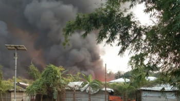 ঘুমধুম ইউনিয়ন পরিষদের তুমব্রু ওয়ার্ডের সদস্য মোহাম্মদ আলম ডেইলি স্টারকে বলেন, 'গত বুধবার ও শুক্রবার যে সব রোহিঙ্গা প্রাথমিক বিদ্যালয়, বিদ্যালয় মাঠ ও আশপাশে আশ্রয় নিয়েছিল, তারা এখনো সেখানেই অবস্থান করছে। আগুনে পুড়ে যাওয়া ক্যাম্পে তারা আর যেতে চাচ্ছে না।'