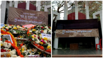 গতকাল দুপুরে পুলিশি বাধার মুখে নারায়ণগঞ্জ সাংস্কৃতিক জোটের প্রতিবাদী ব্যানার ঢাকা হয় কালো কাপড়ে৷ আন্তর্জাতিক মাতৃভাষা দিবস উপলক্ষে শহরের চাষাঢ়ায় কেন্দ্রীয় শহীদ মিনারে আয়োজিত সাংস্কৃতিক অনুষ্ঠানের ওই ব্যানারে লেখা ছিল 'একুশের উচ্চারণ, দূর হ দুঃশাসন'৷