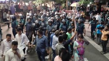 'চাকরিতে আবেদনের বয়সসীমা ৩৫ প্রত্যাশী শিক্ষার্থী সমন্বয় পরিষদের' যুগ্ম আহ্বায় জেরিন আফরিন দ্য ডেইলি স্টারকে বলেন, পুলিশ ছত্রভঙ্গ করে দেওয়ার পর আন্দোলনকারীদের একটি দল শাহবাগ থানার আশপাশে অবস্থান নিয়েছিলেন। সেখানে পুলিশ তাদের লাঠিপেটা করে ৯ জনকে আটক করে।