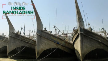 নদী পাড়ে নিভু নিভু প্রদীপের মতো শুধু দুটি নৌকা ভাঙার কারখানা টিকে আছে শত বছরের পুরোনো ব্যবসার ঐতিহ্য ধারণ করে।