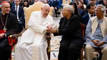 ভ্যাটিকান সিটিতে মানব ভ্রাতৃত্বের দ্বিতীয় বিশ্ব সম্মেলনে পোপ ফ্রান্সিসের সঙ্গে সাক্ষাৎ করেছেন নোবেল বিজয়ী অধ্যাপক ড. মুহাম্মদ ইউনূস।