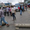 শিল্প পুলিশ ঘটনাস্থলে উপস্থিত হয়ে মহাসড়ক থেকে সরে যেতে শ্রমিকদের সঙ্গে আলোচনা করছেন।