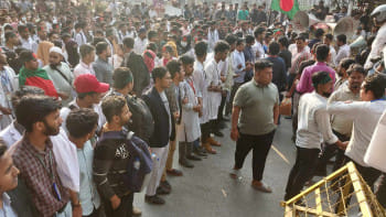 উচ্চশিক্ষার সুযোগ, কমিউনিটি মেডিকেলে নিয়োগসহ চার দফা দাবিতে গতকাল সোমবার সকাল ১১টার দিকে শাহবাগ এলাকায় সড়ক অবরোধ করেন তারা। পরে বিকেলে সচিবালয় ঘেরাও কর্মসূচি করতে গেলে পথে পুলিশ লাঠিপেটা করে ছত্রভঙ্গ করে দেয়৷ এ সময় পুলিশের লাঠিপেটায় অন্তত ১৮ শিক্ষার্থী আহত হন। তারা ঢাকা মেডিকেল কলেজ হাসপাতালে চিকিৎসা নেন।