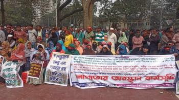 বাধা পেয়ে খাদ্য ভবনের সামনে তারা অবস্থান নিয়েছেন।