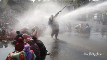 'সেখানে পুলিশের সঙ্গে আমাদের বাগবিতণ্ডা হয়। একপর্যায়ে পুলিশ পুরুষ শিক্ষকদের ওপর লাঠিচার্জ শুরু করে এবং নারী শিক্ষকদের ওপর জলকামান নিক্ষেপ করে,' বলেন তিনি।