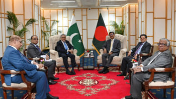 পাকিস্তানের উপপ্রধানমন্ত্রী ও পররাষ্ট্রমন্ত্রী মোহাম্মদ ইসহাক দার আজ রোববার ঢাকায় রাষ্ট্রীয় অতিথি ভবন যমুনায় প্রধান উপদেষ্টা অধ্যাপক মুহাম্মদ ইউনূসের সঙ্গে বৈঠক করেছেন।