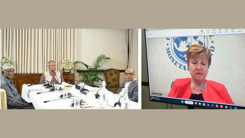 আজ মঙ্গলবার আন্তর্জাতিক মুদ্রা তহবিলের (আইএমএফ) ব্যবস্থাপনা পরিচালক ক্রিস্টালিনা জর্জিয়েভার সঙ্গে ভিডিও কলে কথোপকথনে এ কথা বলেন প্রধান উপদেষ্টা।
