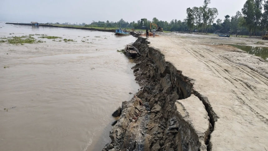 এদিকে ভাঙন রোধে আজ বৃহস্পতিবার সকাল থেকে পানি উন্নয়ন বোর্ড জিও ব্যাগ ও টিউব ফেলার কাজ শুরু করেছে।