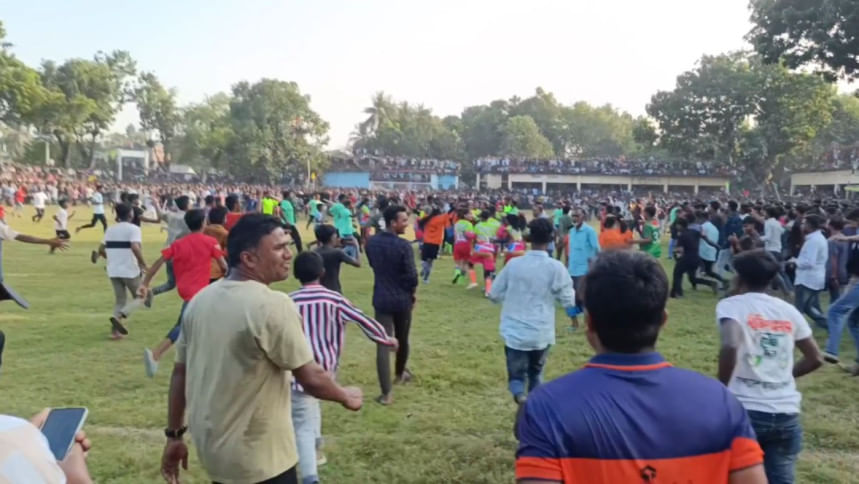 ঝিনাইদহে ছবি তুলতে মাঠে ঢুকে যায় দর্শক, হট্টগোলে আহত ফুটবলার