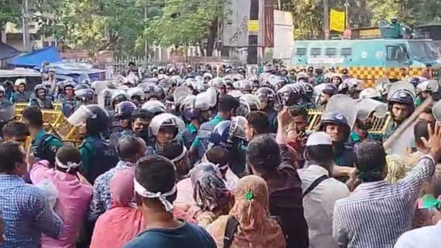 শাহবাগে শিক্ষকদের ওপর পুলিশের লাঠিচার্জ-জলকামান