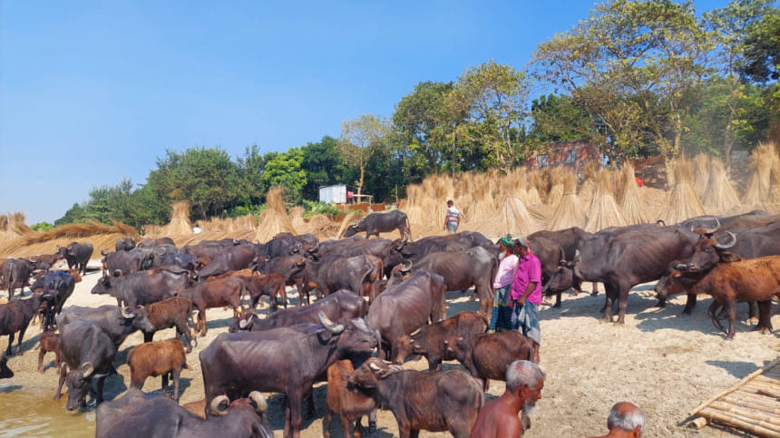 এভাবেই শুরু হয় কুষ্টিয়ার ভেড়ামারা উপজেলার বাহাদুর ইউনিয়নের রায়টা গ্রামের নতুনপাড়ার এই মহিষচরদের গল্প। তাদের জীবনচক্র এবং আয়ের মূল চালিকাশক্তি এই 'মহিষ'।