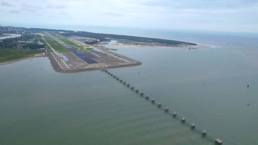 বঙ্গোপসাগরের উপকূলজুড়ে অবস্থিত কক্সবাজার বিমানবন্দর। এর ১০ হাজার ৭০০ ফুট দৈর্ঘ্যের রানওয়েটির ১ হাজার ৭০০ ফুট নির্মিত হচ্ছে সমুদ্রের মহেশখালী চ্যানেলের ওপর।