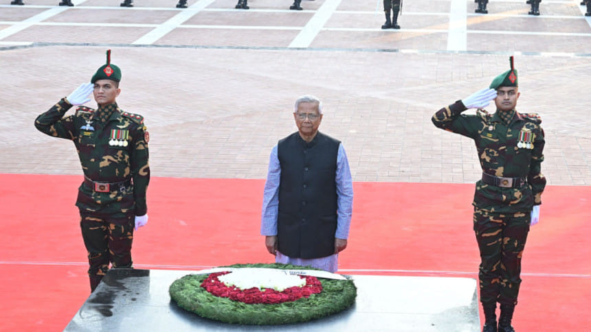 এরপর সেখানে শ্রদ্ধা জানান অন্তর্বর্তী সরকারের প্রধান উপদেষ্টা ড. মুহাম্মদ ইউনূস। তিনিও সেখানে কিছুক্ষণ নীরবে দাঁড়িয়ে থাকেন।