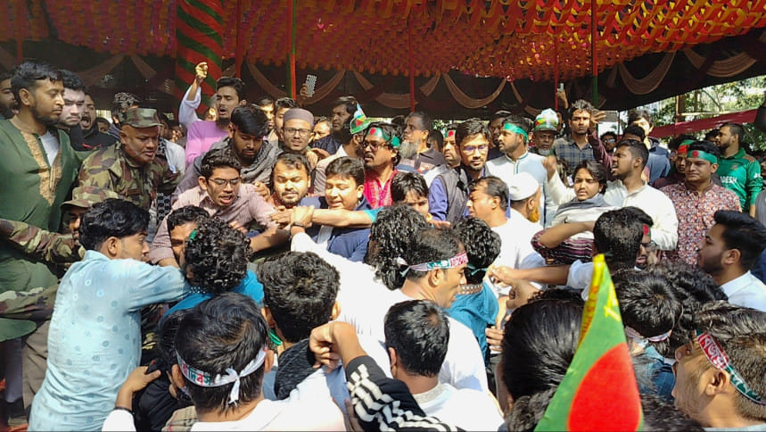 অনুষ্ঠান চলাকালে চট্টগ্রাম বিশ্ববিদ্যালয় ছাত্রদলের (জেসিডি) নেতাকর্মীরা 'ভুয়া', 'ভুয়া' বলে স্লোগান দিতে থাকেন। এসময় ছাত্রদল ও ছাত্র শিবিরের নেতাকর্মীদের মধ্যে হাতাহাতির ঘটনা ঘটে।