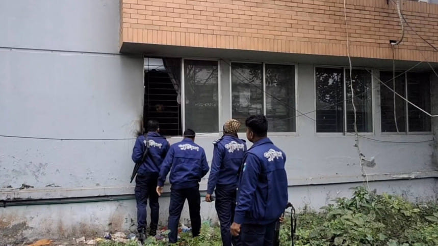 কার্যালয়ের কর্মকর্তা-কর্মচারীরা জানান, ভবনের পেছন দিকের জানালা দিয়ে আগুন দেওয়া হয়।