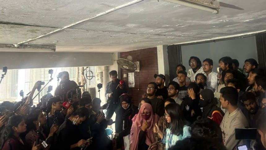 ডাকসুর ভিপি আবু সাদিক কায়েম বলেন, আমরা দুটি দাবি নিয়ে এখানে এসেছি। আমাদের প্রথম দাবি হলো—ফ্যাসিবাদের প্রতীক হিসেবে চিহ্নিত সব বিশ্ববিদ্যালয় স্থাপনার নাম অবিলম্বে পরিবর্তন করা। ক্যাম্পাসে এমন পাঁচটি স্থাপনা রয়েছে এবং এ বিষয়ে শিক্ষার্থীদের মতামত ইতোমধ্যে সংগ্রহ করা হয়েছে।