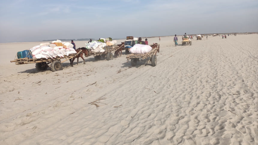 গত ২০ বছর ধরে তিনি এই পেশায় রয়েছেন। প্রতিটি চর হাটে ৫০ থেকে ৬০টি ঘোড়ার গাড়ি থাকে এবং প্রতিটি গাড়িতে ১০ থেকে ১২ মণ পণ্য পরিবহন করা যায়। বালু চরে প্রতি কিলোমিটার পথ অতিক্রম করতে সময় লাগে ২০ থেকে ২৫ মিনিট।