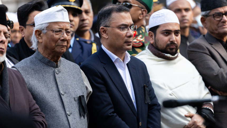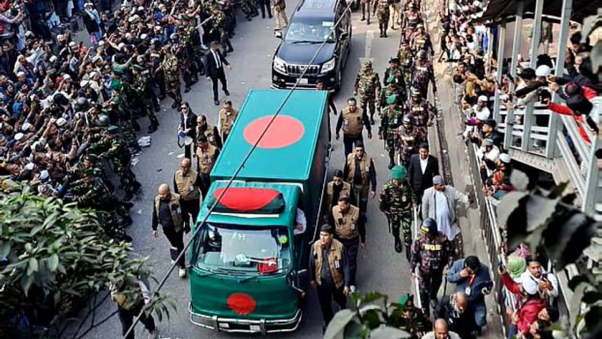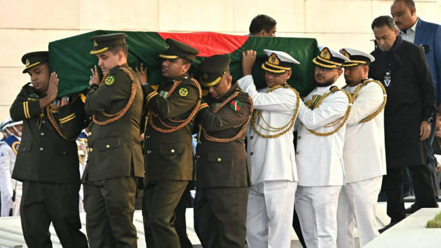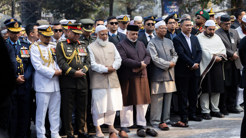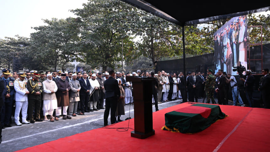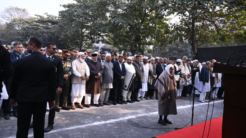 জানাজা থেকে দাফন—এই ফটো স্টোরিতে তুলে ধরা হয়েছে রাষ্ট্রীয় আনুষ্ঠানিকতা, জনসমুদ্র আর শোকের মুহূর্তগুলো।