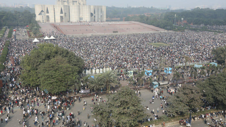 সকাল থেকেই জাতীয় সংসদ ভবন কমপ্লেক্সের দক্ষিণ প্লাজায় শোকাহত মানুষের ভিড় জমতে থাকে। সময়ের সঙ্গে সঙ্গে মানুষের সারি দীর্ঘ হতে থাকে। ধানমন্ডি ৩২ নম্বর এলাকা থেকে আসাদ গেট পেরিয়ে কারওয়ান বাজার পর্যন্ত বিস্তৃত হয় মানুষের লাইন।
