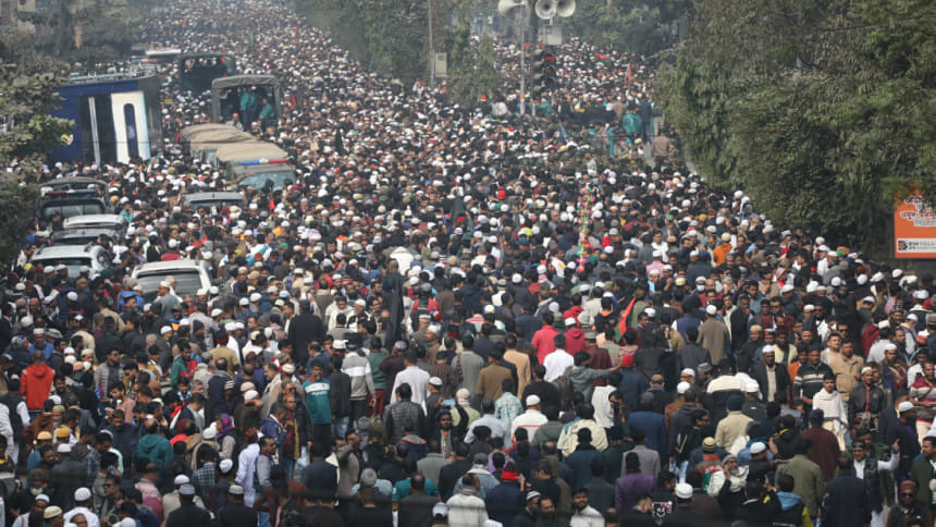 এর আগে জাতীয় সংসদ ভবন কমপ্লেক্সের দক্ষিণ প্লাজা ও মানিক মিয়া অ্যাভিনিউতে বিপুল মানুষের অংশগ্রহণে তার জানাজা অনুষ্ঠিত হয়। জানাজাকে ঘিরে ঢাকার প্রধান সড়কগুলো পরিণত হয় মানুষের ঢলে।