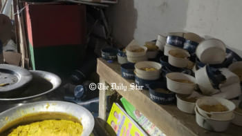 বিএনপির কেন্দ্রীয় কার্যালয়ের সামনের রাস্তার ২ পাশে ব্যবসাপ্রতিষ্ঠানগুলো বন্ধ আছে।