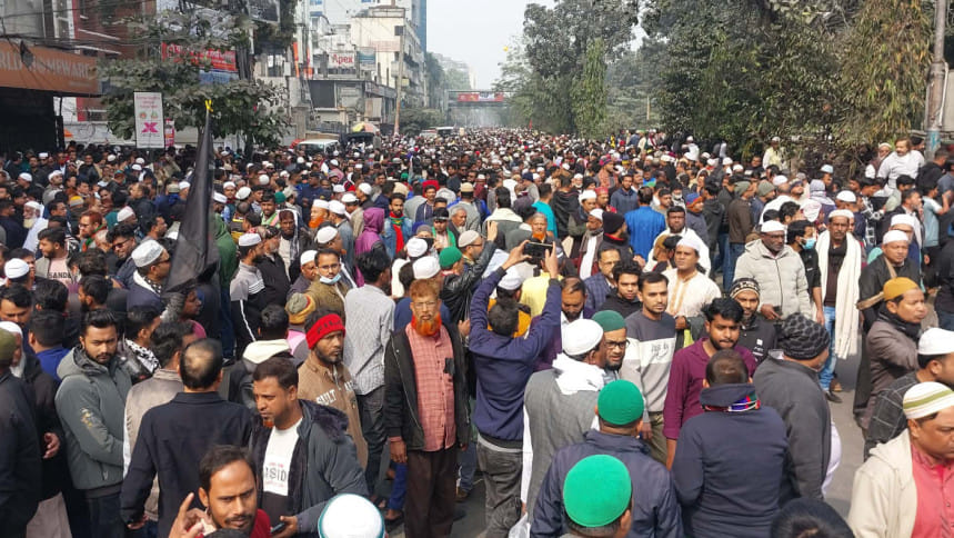মাইকে ঘোষণা করা হয়, মানিক মিয়া অ্যাভিনিউ এবং আশেপাশের এলাকায় এরইমধ্যে লাখ লাখ মানুষ জড়ো হয়েছেন। জানাজায় অংশ নিতে আসা লোকেদের নির্ধারিত স্থানে অবস্থান নিতে বলা হয়।